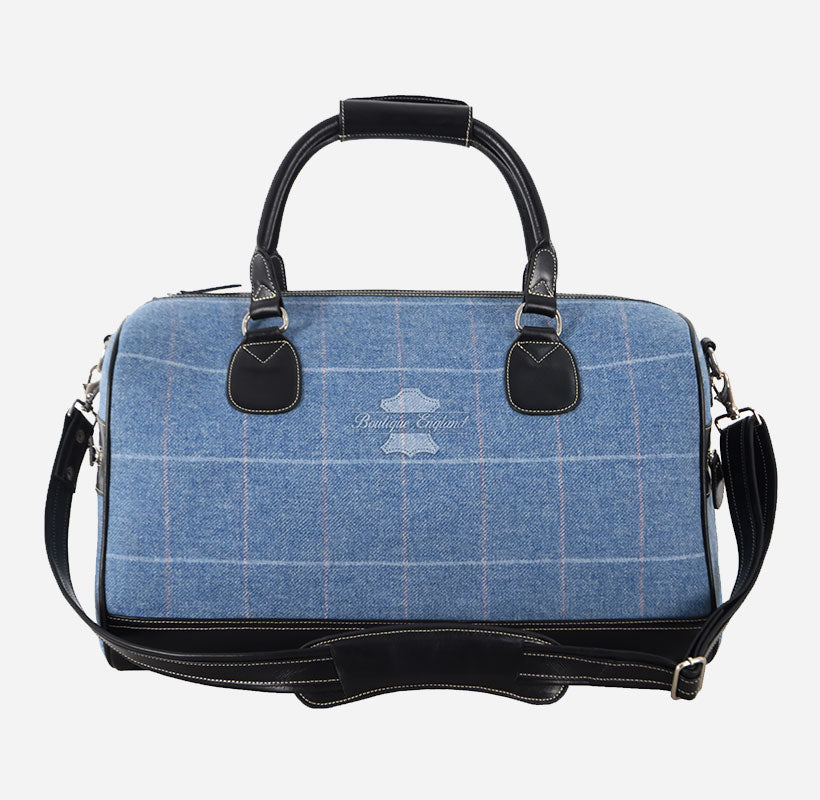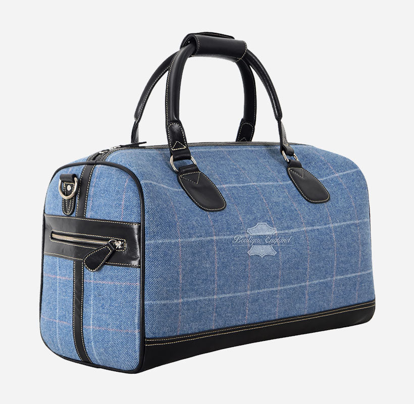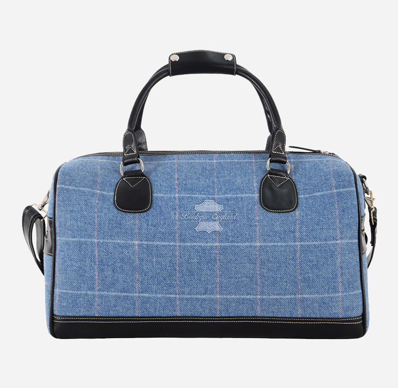 Tweed Fabric Holdall Duffel Weekend Bag with Leather Detailing