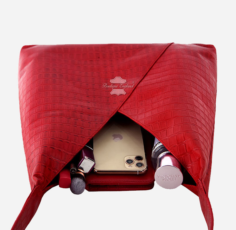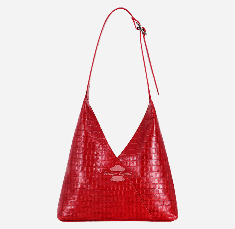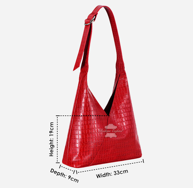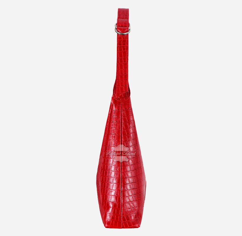 Women’s Red Croc Print Small Hobo Slouch Shoulder Tote Bag