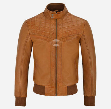CHARLBURY Men's Tan Leather Bomber Jacket