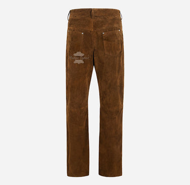 Introducing our Men's Suede Pants, a fusion of rugged biker style and luxurious comfort. Crafted from premium cow suede in a striking tan color, these pants exude effortless cool and timeless sophistication. Designed with the discerning biker in mind, they feature a classic regular fit and long raw bottom openings, allowing for easy length adjustment to suit your preferences. The heavy-duty button closure ensures durability and security, while the strategically placed pockets on the front and back offer practicality without compromising on style. Whether you're hitting the open road or simply making a statement on the streets, our Men's Suede Pants are the epitome of versatile, edgy fashion.