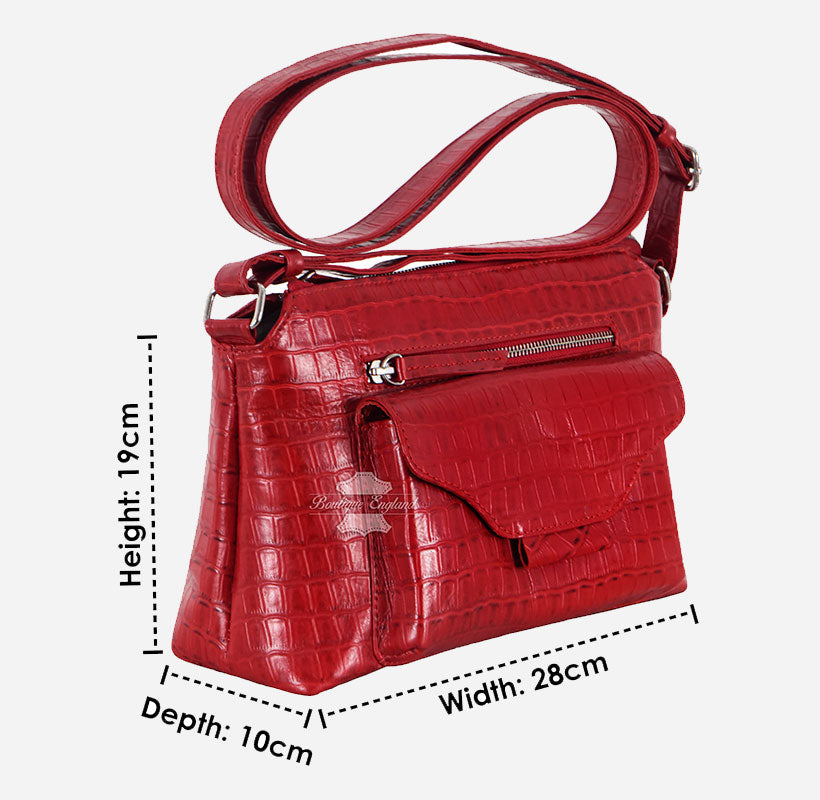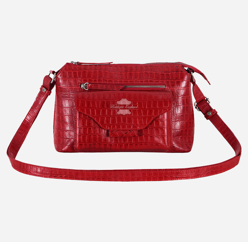 Introducing the stunning Red Crocodile Print Leather Travel Satchel Handbag, a must-have accessory for any fashion-forward woman. This beautiful shoulder bag purse is made from high-quality leather, which has been embossed with a striking crocodile print that's sure to turn heads wherever you go. With its spacious design, this satchel handbag is perfect for carrying all your daily essentials and more. It features multiple pockets and compartments, making it easy to keep your items organized and within reach. The comfortable shoulder strap ensures that you can wear it all day without any discomfort.