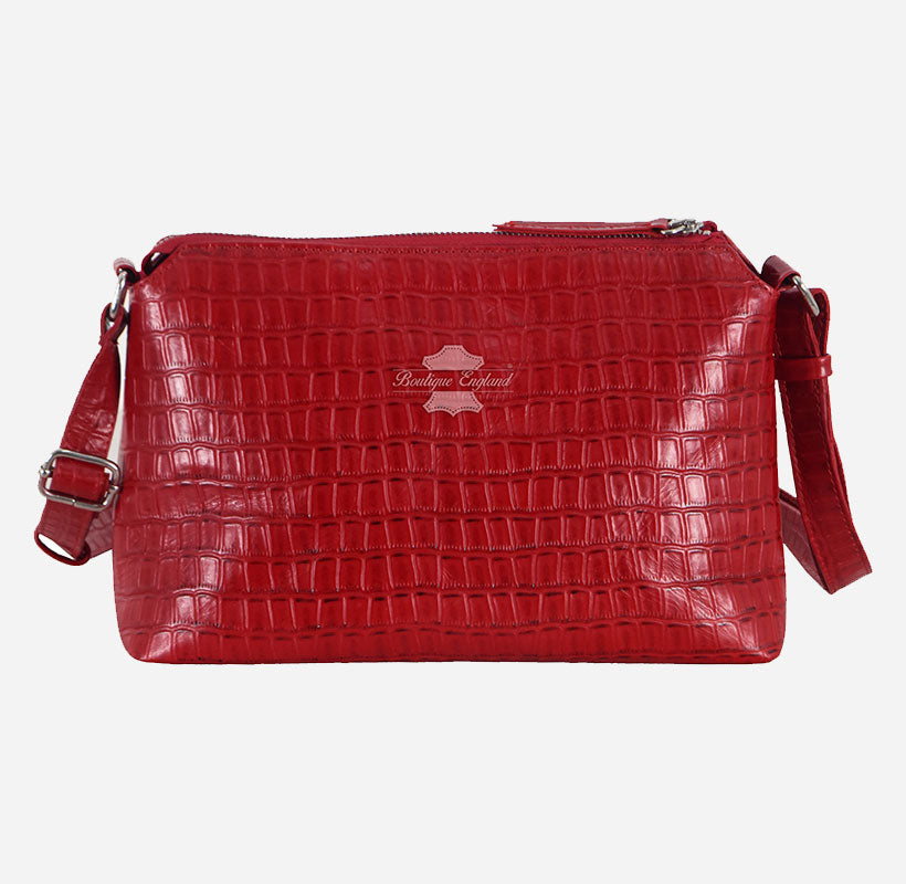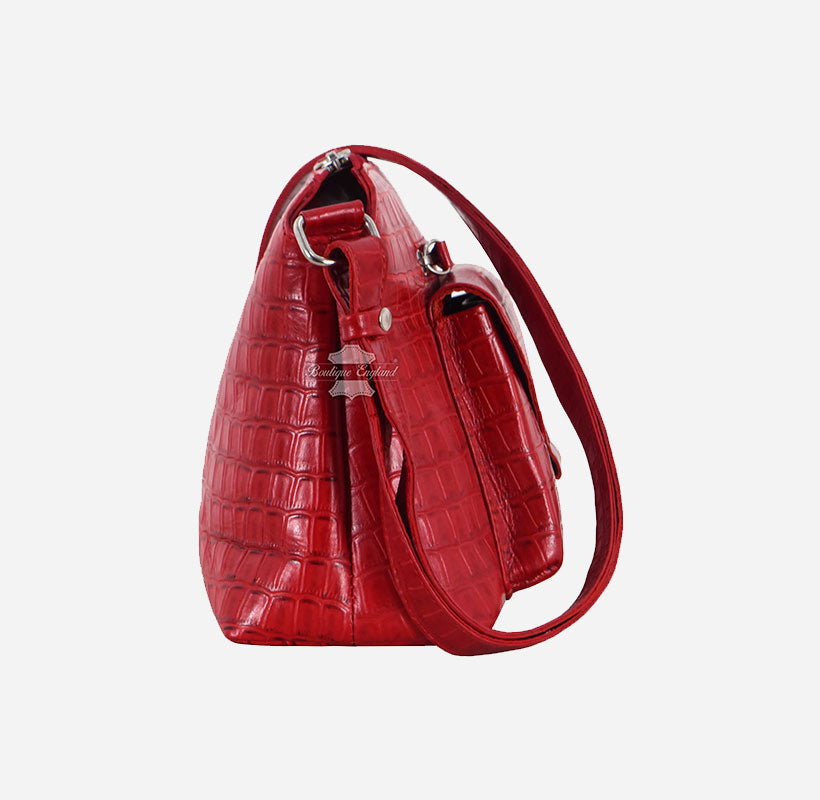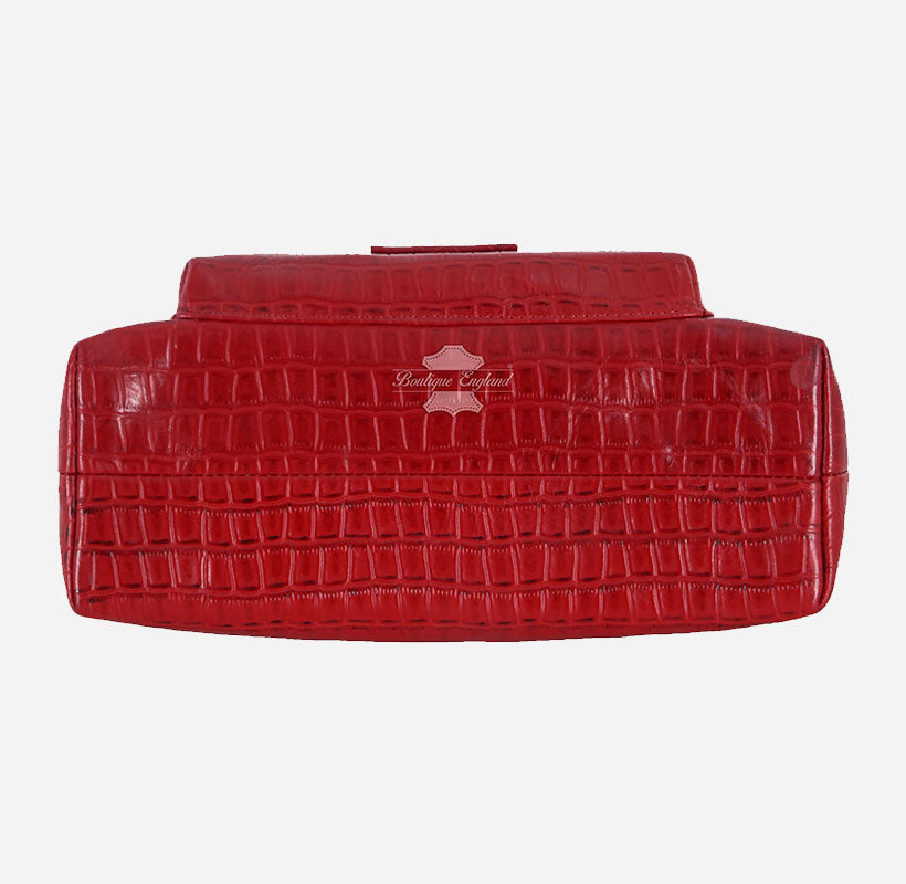 Womens Shoulder Bag Purse Red Crocodile Print Leather Travel Satchel Handbag