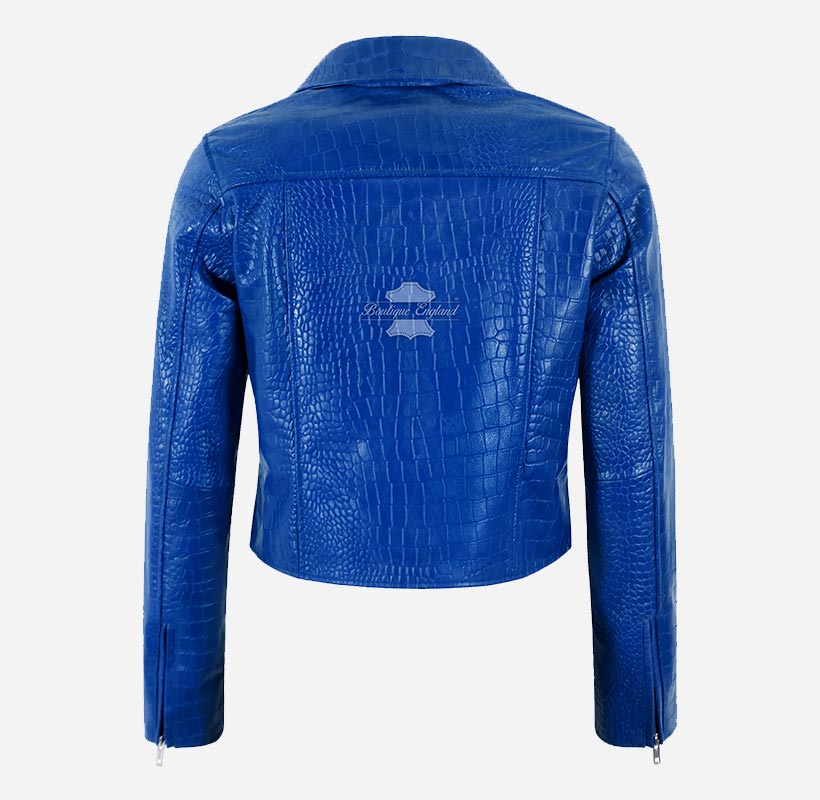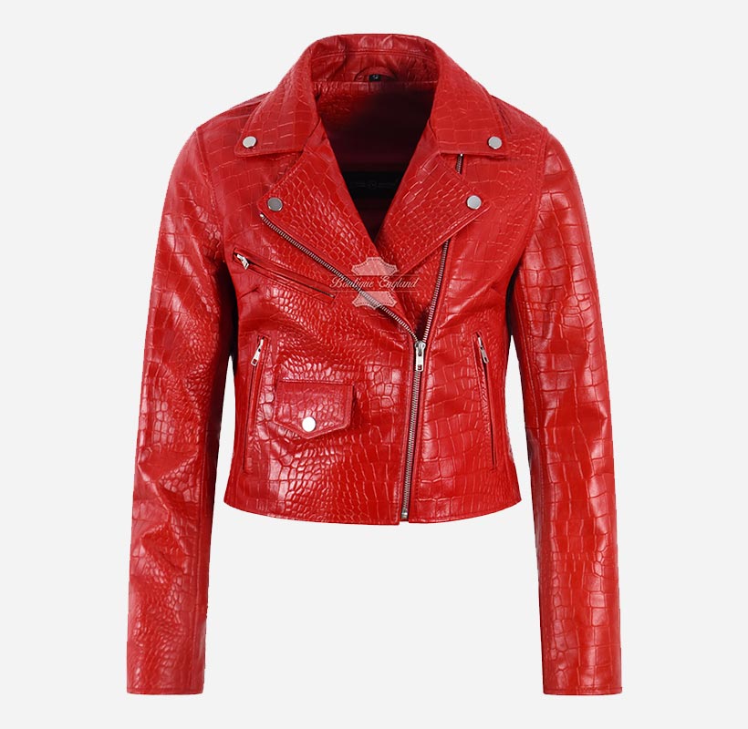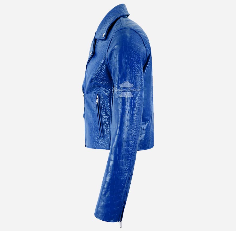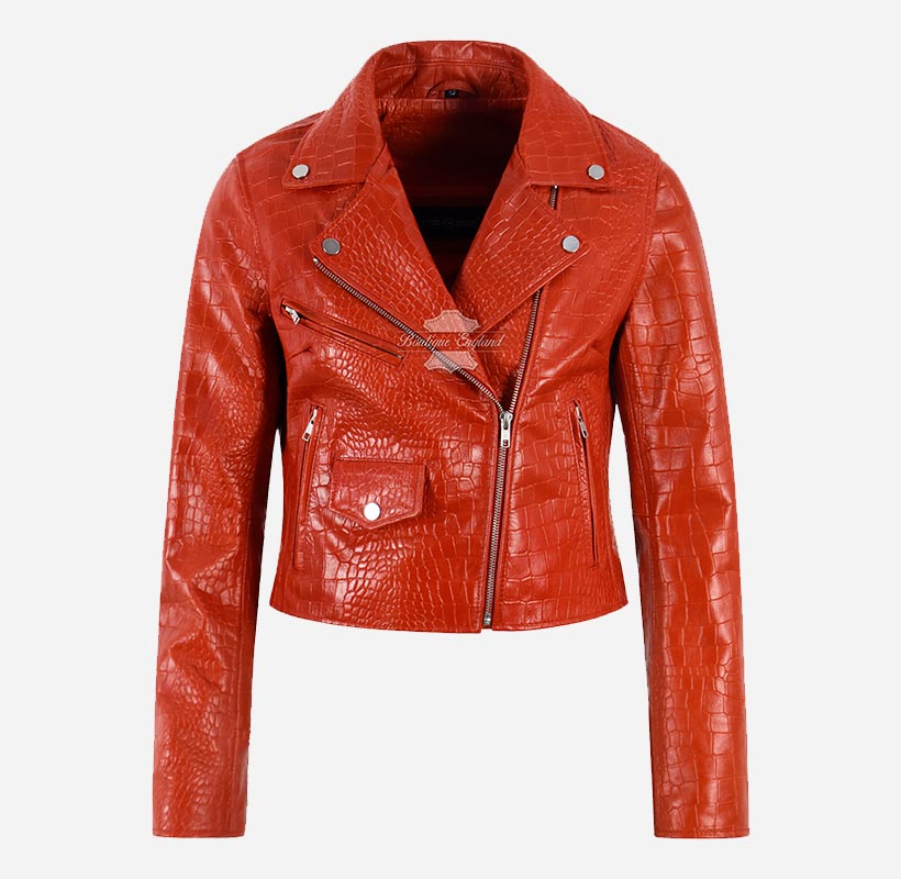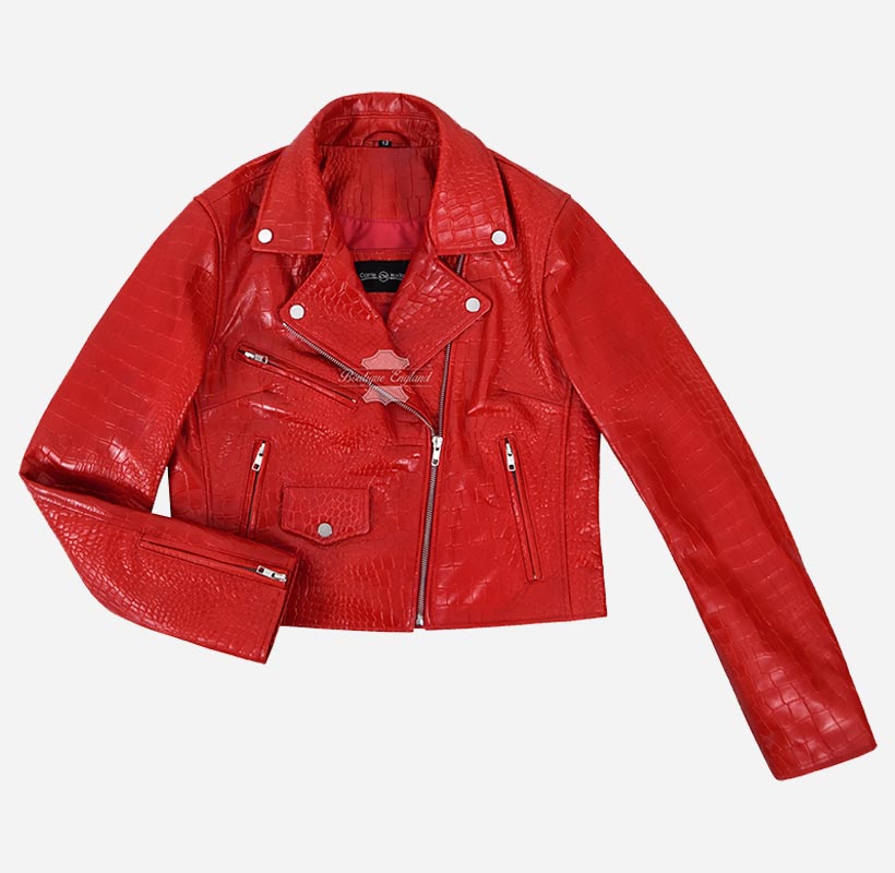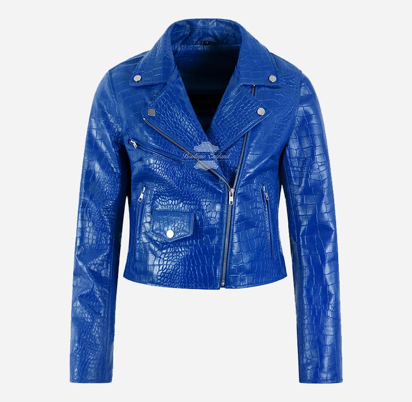 This leather jacket is the perfect addition to any fashion-forward wardrobe. Available in 6 bold and stylish colors - this slim fit leather biker jacket is designed to make a statement. Crafted from high-quality sheep napa leather with bold and exotic croc print on it, this jacket is both durable and comfortable, ensuring that you look and feel your best no matter where you go. The cross zip closure adds an edgy touch to the overall design, while the slim fit cut flatters your figure and accentuates your curves. Whether you're dressing up for a night out or just want to add a touch of bold style to your everyday look, the Emma Watson Leather Jacket is the perfect choice.
