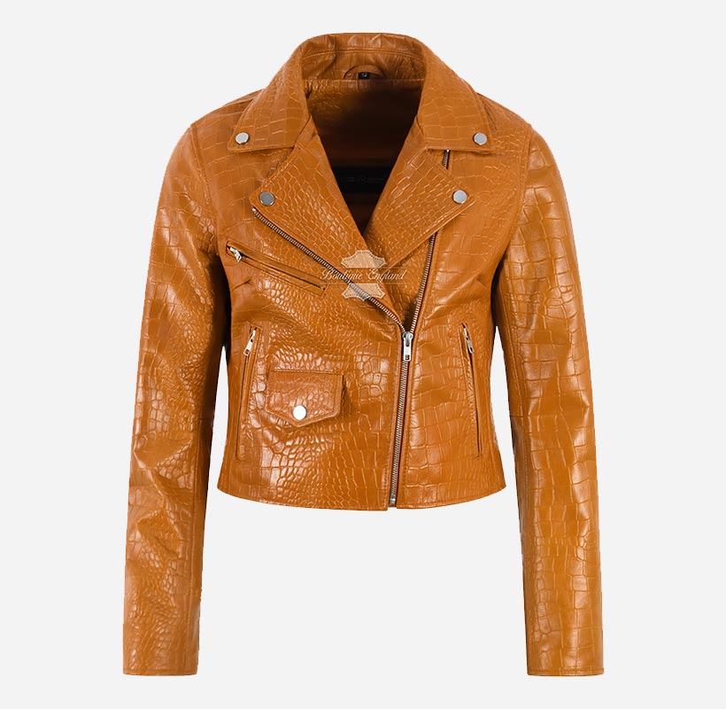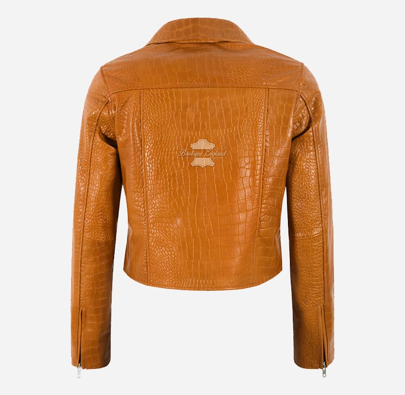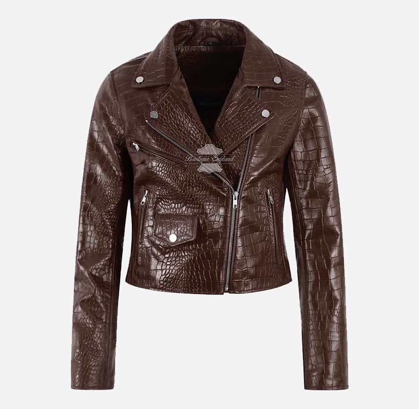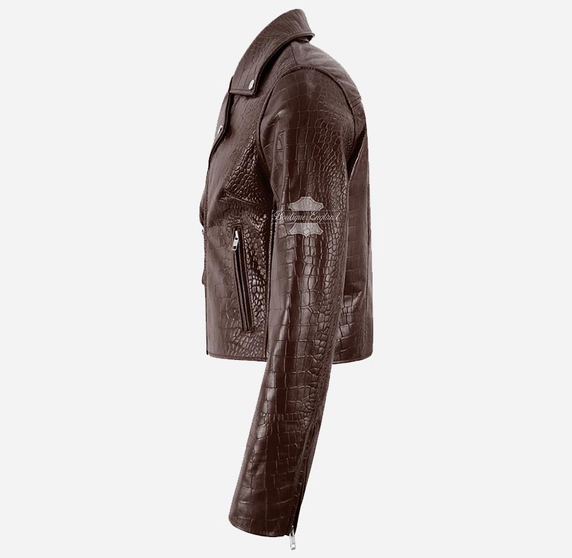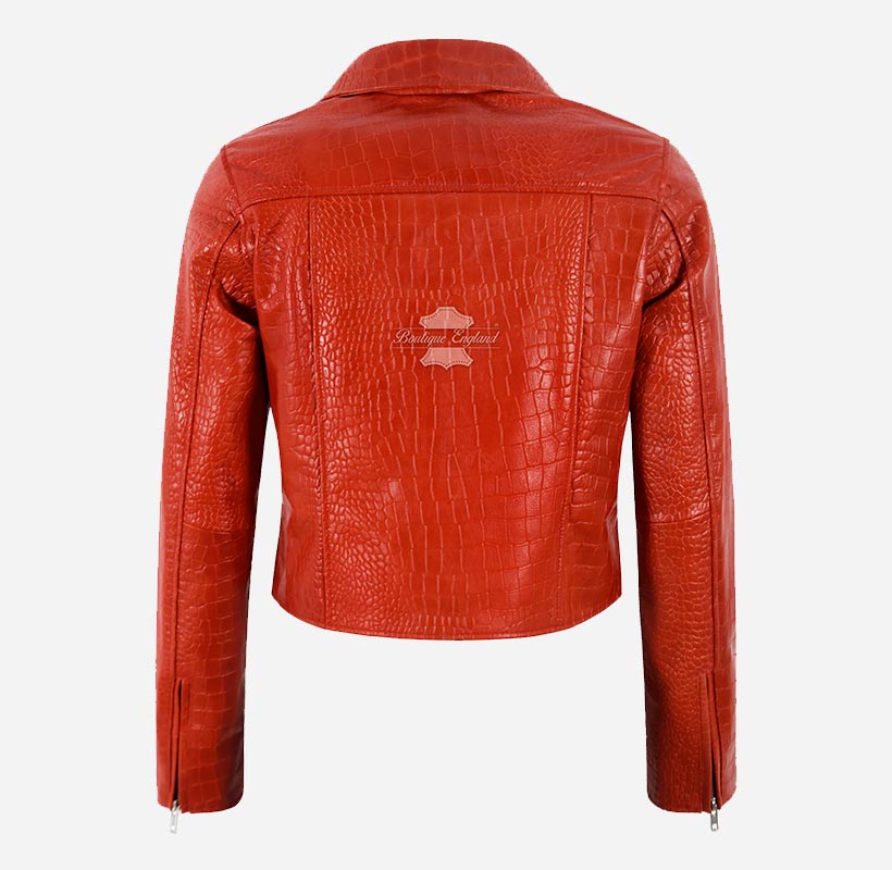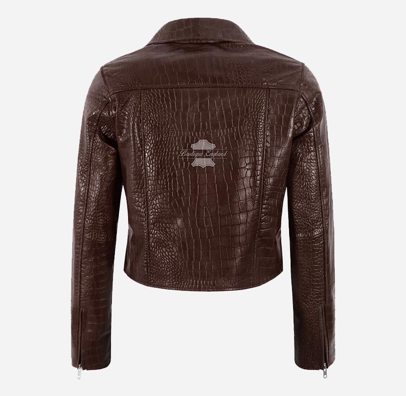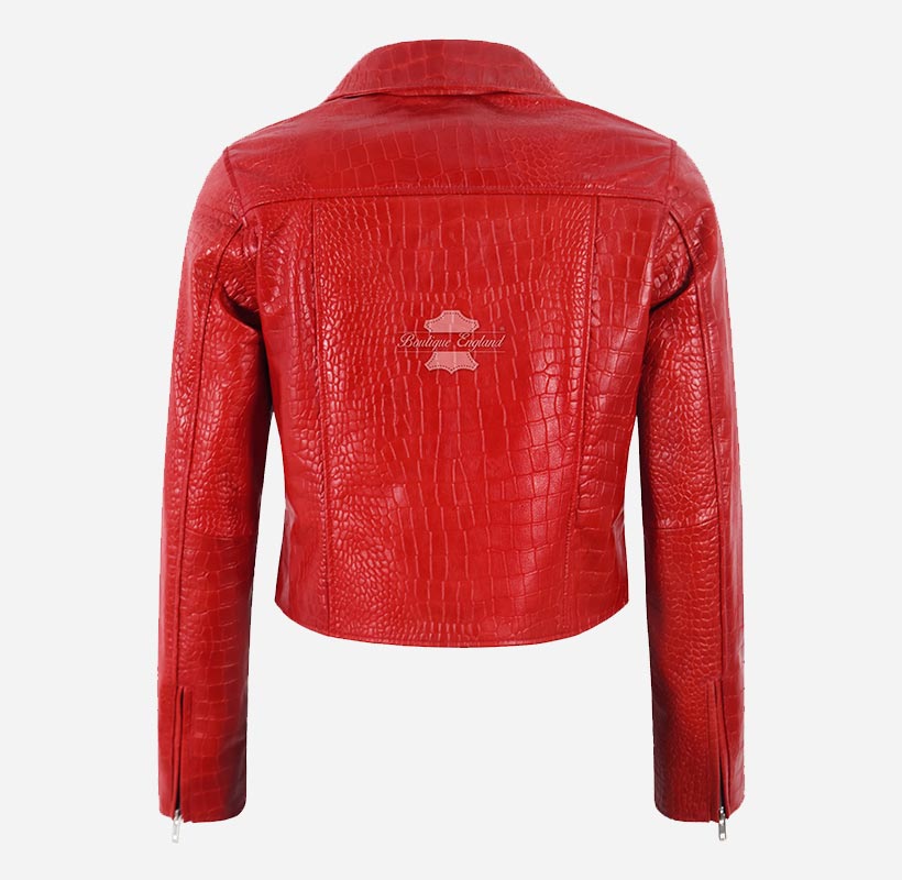EMORI Women's Croc Print Leather Biker Jacket