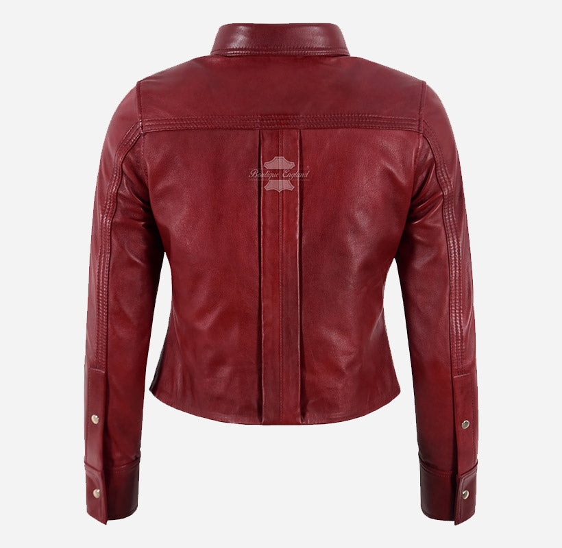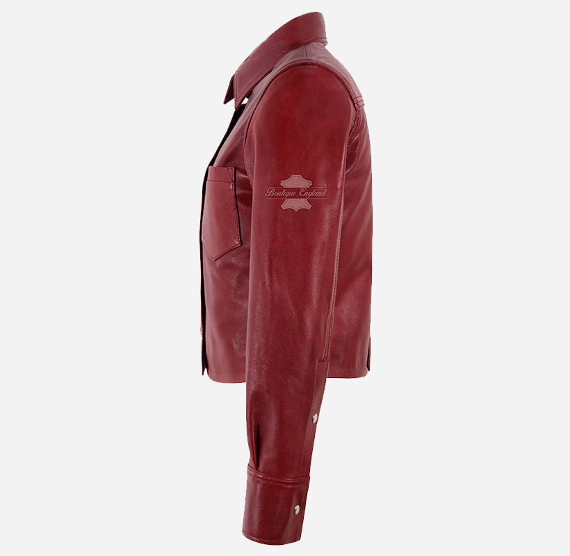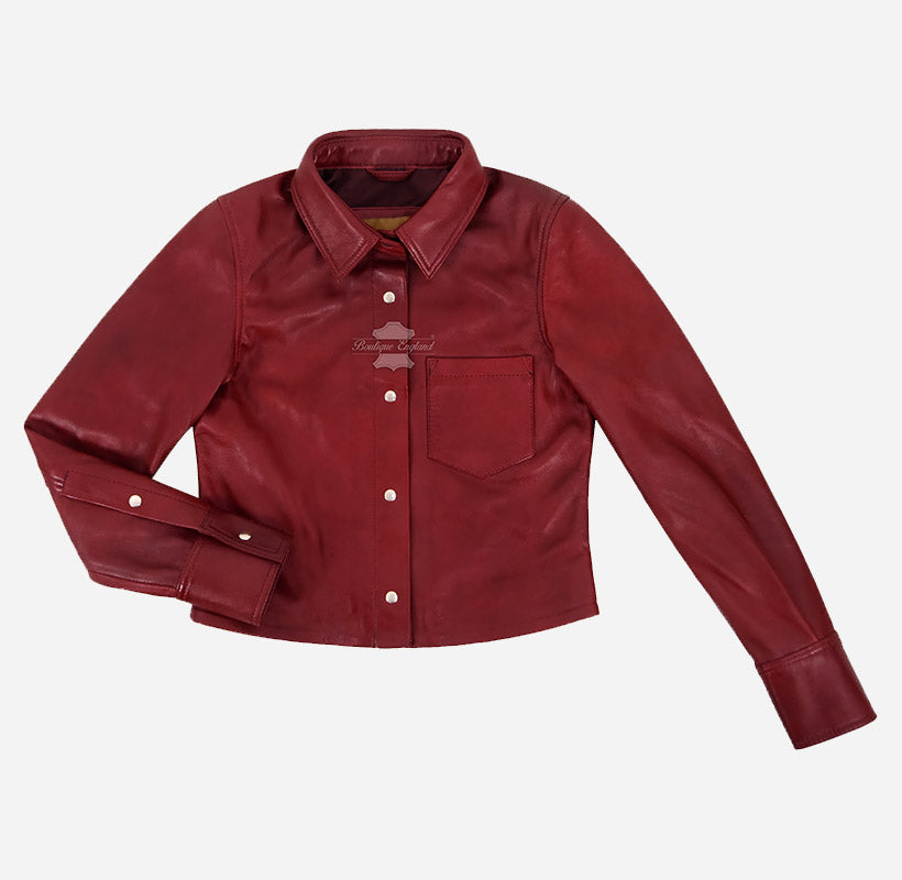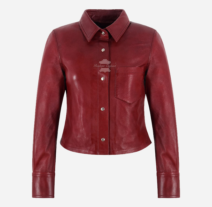 Make a statement with the SHANESE Women’s Leather Shirt Jacket, a stunning fusion of a classic shirt silhouette and the timeless appeal of genuine leather outerwear. Crafted from premium quality dark red leather, this chic shacket offers both style and substance. It features a snap button front closure, buttoned cuffs, and a classic shirt collar for a sleek, structured look. The soft polyester lining ensures lasting comfort, while the single chest pocket adds a functional touch. Perfect for layering over jeans or pairing with tailored trousers, this versatile leather shirt jacket brings effortless sophistication to any outfit—casual or semi-formal.