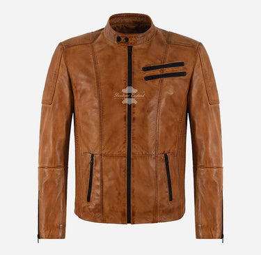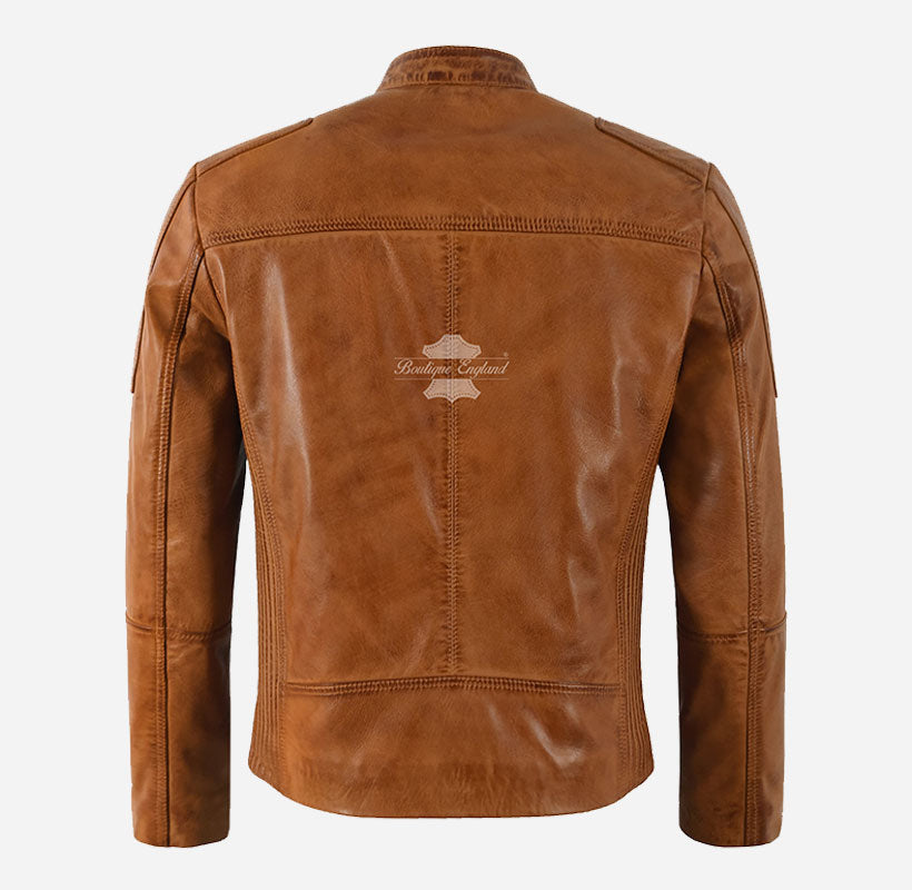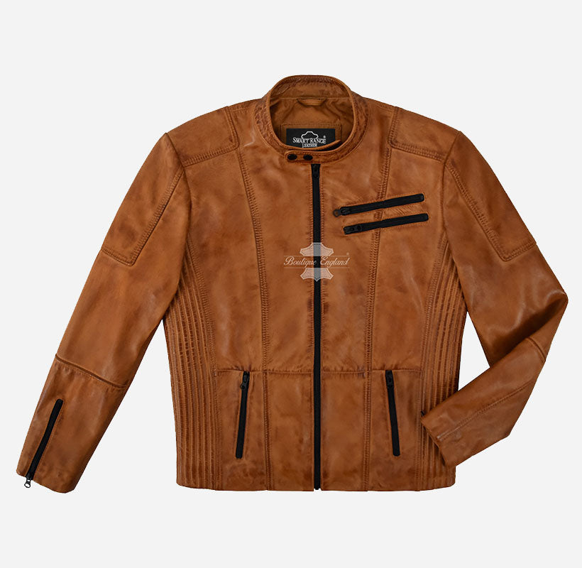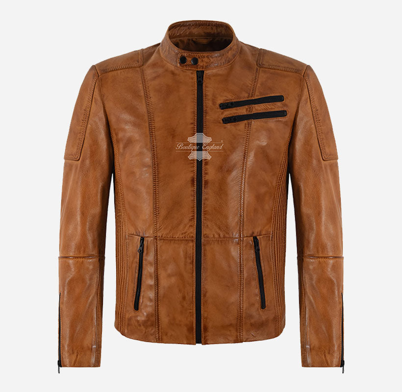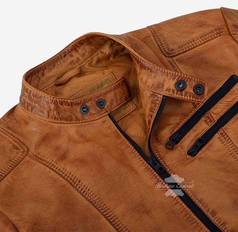 Matteo Biker Lederjacke für Herren Hellbraun Gewachste Herren Moto Jacke