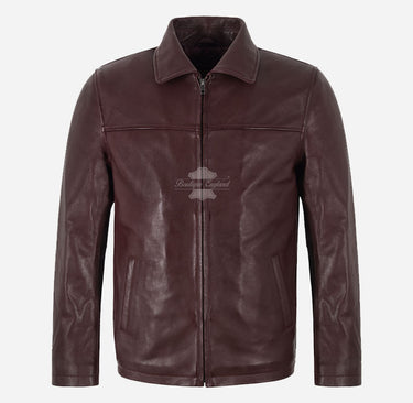 Lässige LEDERJACKE für Herren Braune Kuh-Skipper-Lederjacke mit Kragen