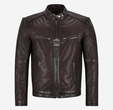 RAMBLE Herren Biker Lederjacke Braun Weiche Echtlederjacke