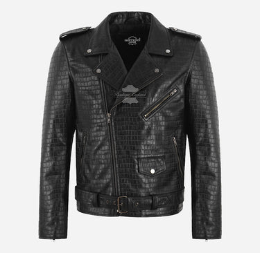 THROTTLE Herren-Bikerjacke aus Leder mit Kroko-Print