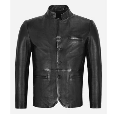 BAND-Kragen-Leder-Blazer Herren-Lederjacke mit klassischem Knopfverschluss
