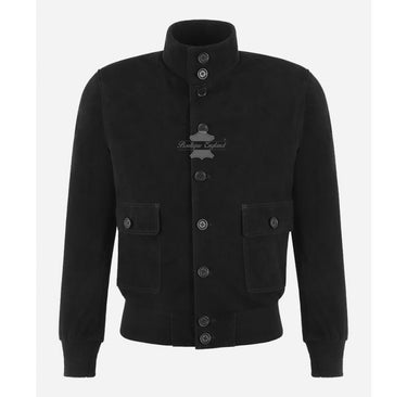 Wir stellen vor: die schwarze Wildleder-Bomberjacke im Blouson-Stil für Herren, die perfekte Ergänzung für Ihre Garderobe. Diese Jacke ist aus weichem und leichtem Ziegenveloursleder gefertigt, wodurch sie angenehm zu tragen ist und dennoch einen stilvollen Look bietet. Das Wildledermaterial verleiht der Jacke eine einzigartige Textur und Optik, die sie von traditionellen Bomberjacken unterscheidet. Der Blouson-Stil der Jacke sorgt für eine entspannte, lässige Passform, die sowohl hoch als auch leger gekleidet werden kann und somit perfekt für jeden Anlass ist. Die schwarze Farbe ist vielseitig und lässt sich leicht mit anderen Kleidungsstücken in Ihrer Garderobe kombinieren, was sie zu einem Must-Have für jeden modebewussten Mann macht.