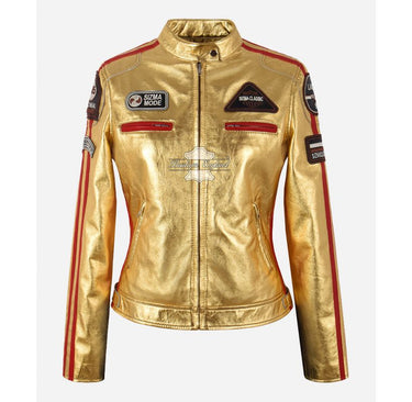 SIZMA LEDERJACKE DAMEN BIKER RACER FASHION Folierte LEDERJACKE