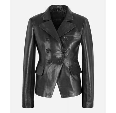 ISADORA Damen Zweireihiger Ledermantel Blazer Jacke