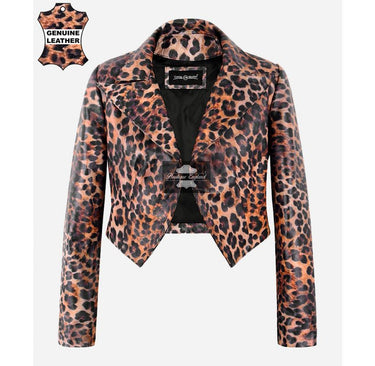 Damen-Bolerojacke aus Leder mit Leopardenmuster, kurzer Körper, schlanke Passform