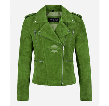 Wir stellen die MYSTIQUE Suede Leather Jacket vor, eine atemberaubende Jacke im Biker-Stil, die mit Sicherheit alle Blicke auf sich ziehen wird. Diese Damenjacke aus hochwertigem lindgrünem Wildleder verfügt über einen vorderen Kreuzreißverschluss mit einem Reverskragen, der dem Stück einen Hauch von Kante verleiht. Die MYSTIQUE Wildlederjacke ist mit Liebe zum Detail gefertigt, um sicherzustellen, dass sie nicht nur stylisch, sondern auch funktional ist. Egal, ob Sie nach einem Statement-Piece suchen, um Ihr Outfit aufzuwerten, oder nach einer praktischen Jacke, die Sie warm hält, die MYSTIQUE Suede Leather Jacket ist genau das Richtige für Sie. Geben Sie sich nicht mit Gewöhnlichem zufrieden, entfesseln Sie Ihre innere Mystik mit dieser unverzichtbaren Jacke.