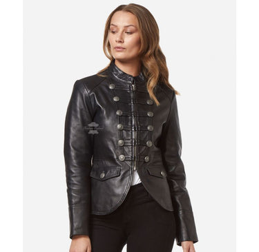 VICTORY Damen-Lederjacke im Militär-Parade-Stil, klassische Nieten-Damen-Lederjacke 8976