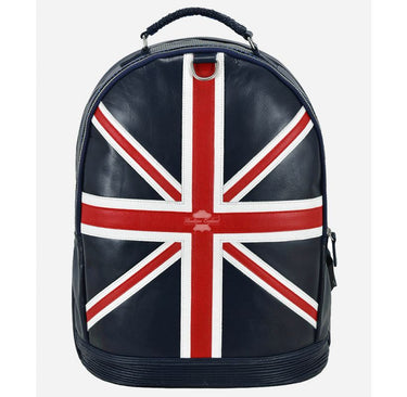 Men's Union Jack Leather Backpack Navy Blue Classic Style Laptop Bag