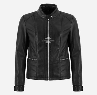Sleek, stylish, and effortlessly versatile — the RELISH Women's Black Leather Racer Jacket is your go-to outerwear for casual outings and everyday edge. Crafted in a fitted silhouette, this classic racer-style jacket features a sharp band collar with press stud closure, heavy-duty center zip fastening, and clean lines for a streamlined look. Designed for both style and functionality, it includes two outer pockets and press-stud cuffs for added detail. Whether layered over jeans or dresses, this jacket adds an instant touch of cool sophistication to any outfit.