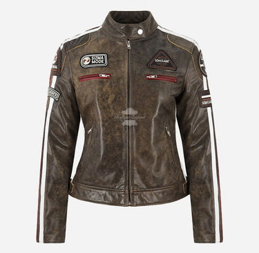 SIZMA Women's Leather Racer Jacket Cracked Effect