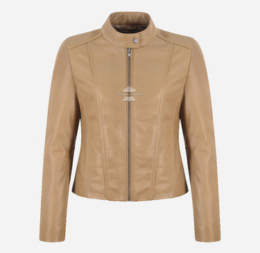 GINI Women’s Fitted Leather Moto Jacket Beige