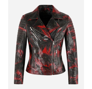 SUPERMODEL Ladies Leather Jacket Waxed Gold Sparkle Effect Biker LEATHER JACKET