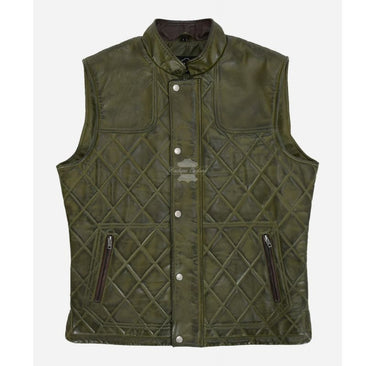 The Olive Green Quilted Gilet Men's Sleeveless Leather Jacket
