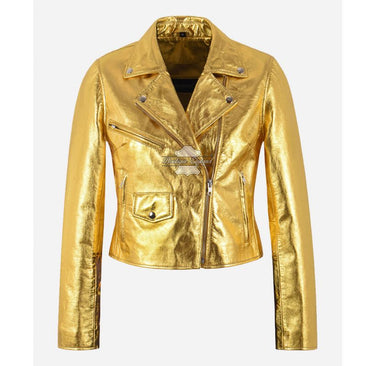 Veste en cuir style EMMA WATSON pour femme dorée