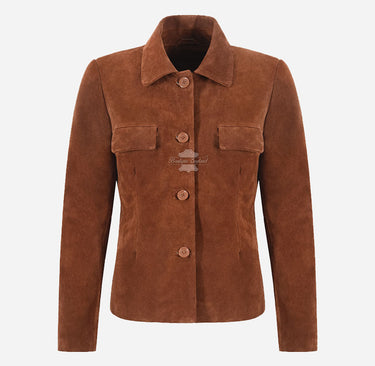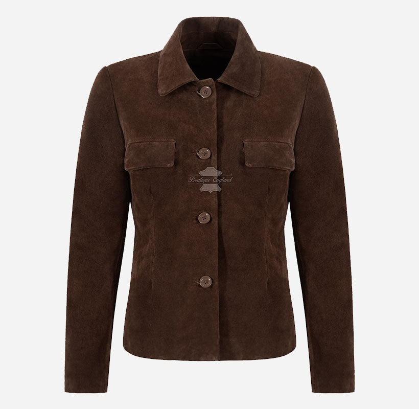 MCKENNA Women’s Classic Button Down Collared Suede Jacket