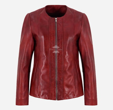 Veste en cuir sans col pour femme SOAVA rouge foncé
