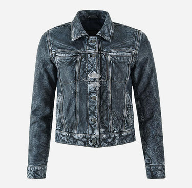 TRUCKER Veste en jean en cuir pour femme Veste chemise en cuir ciré