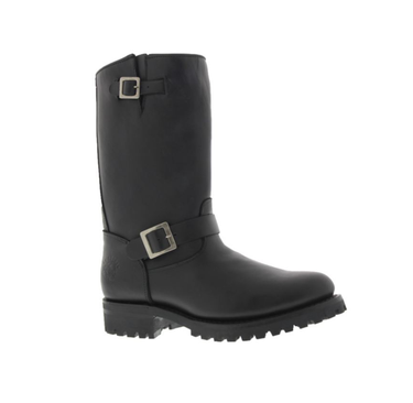 The mens and womens Wild One engineer boots from Grinders feature uppers made from premium quality leather uppers with buckle detailing and Grinders logo which adds character. The easy pull on design makes these mid calf biker boots easy to get on and off while the cushioned midsole offers comfort. With a Goodyear welted construction and a rubber commando sole these tall lth rigger boots are built to last and prefect for everyday wear.