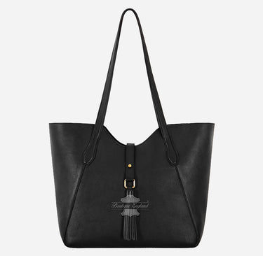 Add timeless charm and everyday functionality to your wardrobe with this Women’s Double Handle Black Cowhide Leather Tote Bag. Crafted from natural, soft-touch cowhide leather, this medium-sized hobo-style shoulder bag offers a slouchy silhouette that blends elegance with ease. Featuring a roomy main compartment secured with a lobster clasp, inner zip and side pockets, and a durable canvas fabric lining, it’s ideal for storing your phone, cash, cosmetics, and daily essentials. The stylish fringe detailing and comfortable dual handles make it perfect for travel, errands, or casual outings—an effortlessly chic companion for any occasion.
