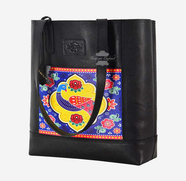 Elevate your style with our exquisitely crafted Women's Truck Art Leather Tote Bag Shoulder Bag, meticulously made from high-quality Fully Grain Cow Hide Leather for enduring durability and a touch of luxury. Featuring a spacious main compartment along with a convenient outer front pocket adorned with Premium Traditional Pakistani Truck Art Printing, this versatile bag seamlessly combines functionality with cultural flair. Whether you're navigating through your busy workday, hitting the gym, lounging by the pool, strolling along the beach, or enjoying a leisurely picnic, this bag is designed to accommodate all your essentials, effortlessly transitioning from work to exercise to leisure time.