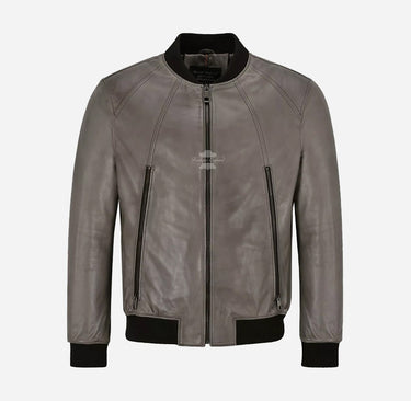 Introducing the STANTAN Leather Bomber Jacket for Men in Grey, a perfect blend of classic and modern style. Crafted from premium grade soft sheep napa leather, this jacket offers exceptional comfort and durability. It features a contrasting black ribbed collar, cuffs, and hem, adding a touch of sophistication to its sleek design. The heavy-duty center zip fastening ensures a secure fit, while the two large outer zippered pockets provide practical storage. Ideal for elevating any casual or semi-formal look, the STANTAN jacket is a versatile and stylish addition to any man's wardrobe.