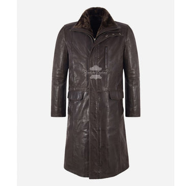 Daryl Dixon Men's Brown Long Leather Coat Leather Overcoat