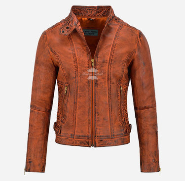 GAGE Leather Biker Jacket For Women Fitted Fashion Leather Jacket
