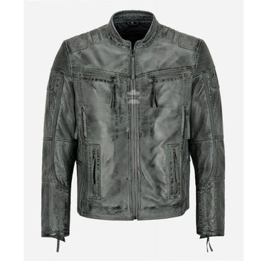 RACER Grey Vintage Men's Leather Biker Jacket