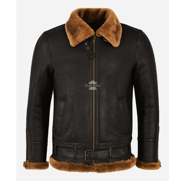 The B3 Shearling Sheepskin Leather Jacket with belt is a stylish and comfortable outerwear option that is perfect for colder weather. This bomber RAF aviator style jacket features a natural fur lining that provides excellent warmth and comfort. The jacket is made from high-quality shearling sheepskin leather, which is durable and long-lasting. The natural fur lining adds an extra layer of insulation and ensures that you stay warm and cozy even in the coldest temperatures. The jacket is available in two classic colors, which are brown and black. The bomber RAF aviator style gives the jacket a timeless and classic look that is both fashionable and functional. The addition of the belt adds a touch of sophistication to the jacket, while also helping to create a more fitted and streamlined look. The jacket also features a zip closure, which helps to keep the cold air out and ensures that you stay warm and comfortable.