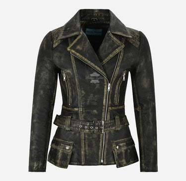 DESIRE Women's Trench Style Leather Jacket with Belt