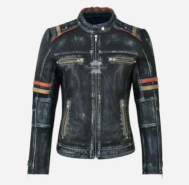 VINTAGE VIXEN Ladies Distressed Café Racer Leather Biker Jacket