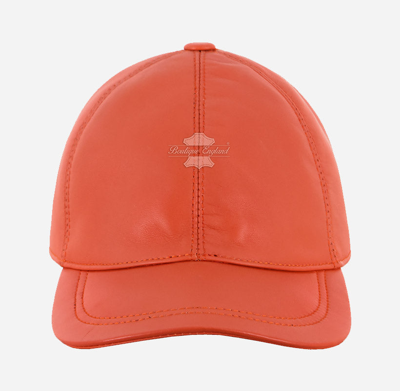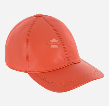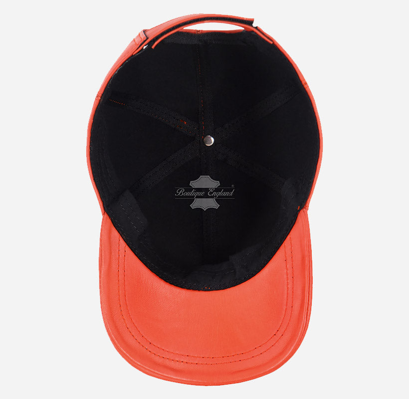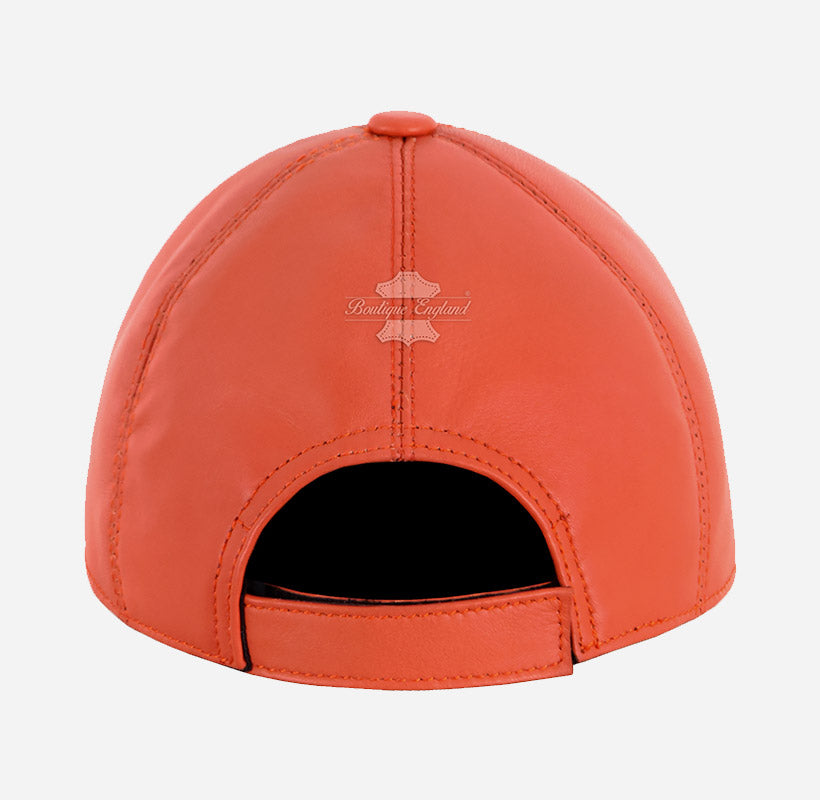 Upgrade your streetwear style with this premium orange baseball cap, handcrafted from soft genuine Napa lambskin leather for a luxurious feel and long-lasting comfort. Designed to fit all head sizes with an adjustable back strap, this real leather cap offers a perfect blend of hip-hop edge and classic design. Unlike synthetic materials, natural leather is breathable and develops a rich patina over time, adding unique character with every wear. Whether for casual outings or standout fashion moments, this luxury leather cap delivers quality, comfort, and timeless appeal—all at an unbeatable price.