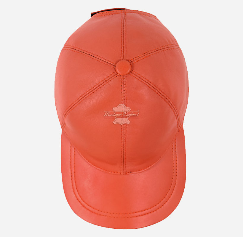 Unisex Leather Baseball Cap Orange Adjustable Hat