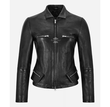 Romilly Ladies Jacket Black Shirt Collar Slim Fit Casual Leather Jacket